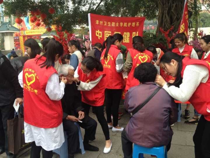3月6日上午,护理系关爱孕产妇队、中医保健队师生一行18人到漳州市中山公园开展“心手相牵 健康同行”社会服务活动。