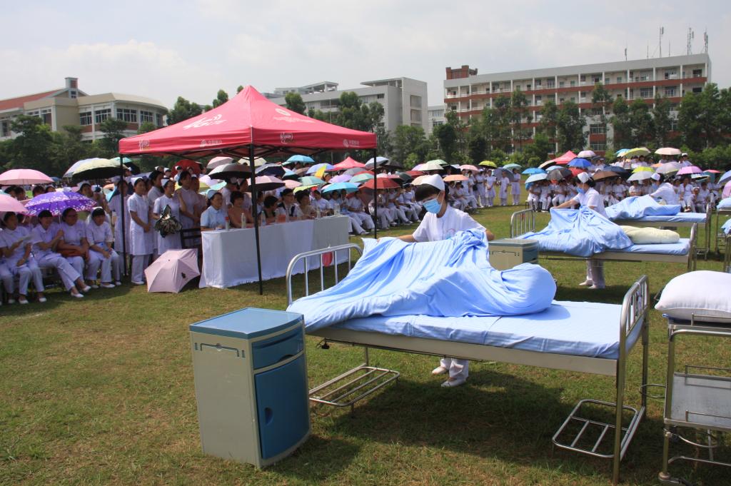 2015年6月11日上午,护理系2700多名师生在田径运动场盛大举行大型专业校园文化品牌活动——第八届“沙场点兵”护理技能操作大赛。学院领导及来自全省多家实习教学单位的领导专家共同观摩了本次活动。