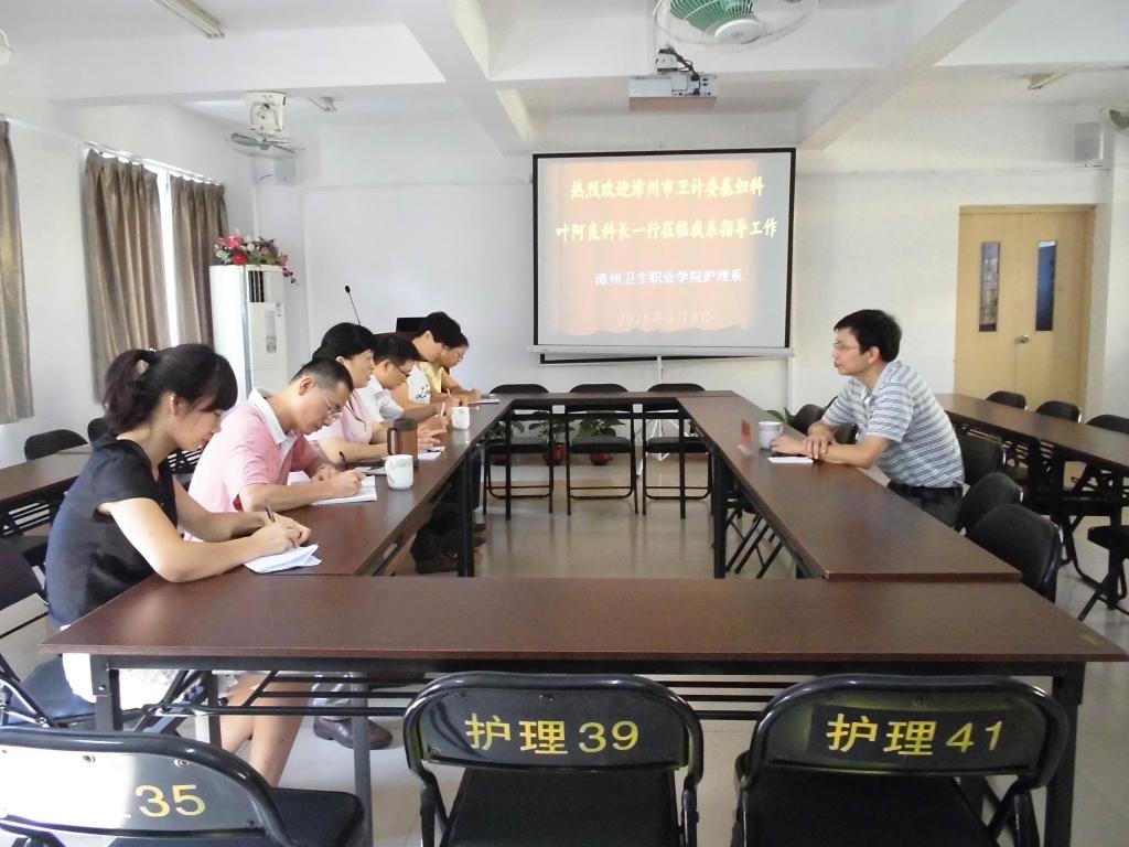 6月8日下午,为推进高职医学教育改革,创新“政府主导、行业指导、企业参与”办学机制体制,护理系邀请漳州卫计委基妇科叶阿良科长围绕专业建设与发展开展深入洽谈。