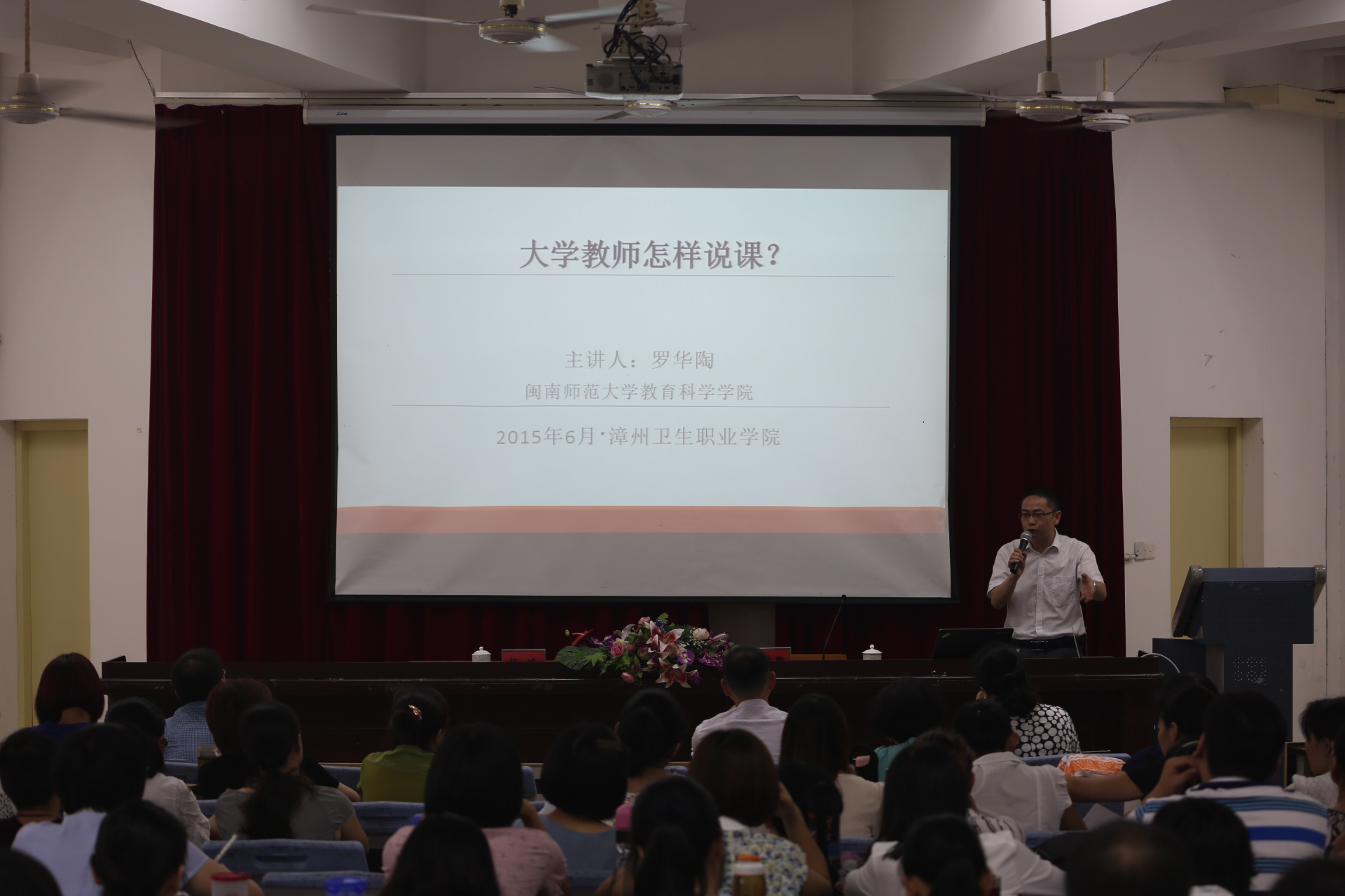 2015年6月2日下午,护理系在明德楼三教举行《大学教师怎样说课》讲座,讲座由闽南师范大学罗华陶老师主讲,全院教师都认真认真聆听了本场讲座。