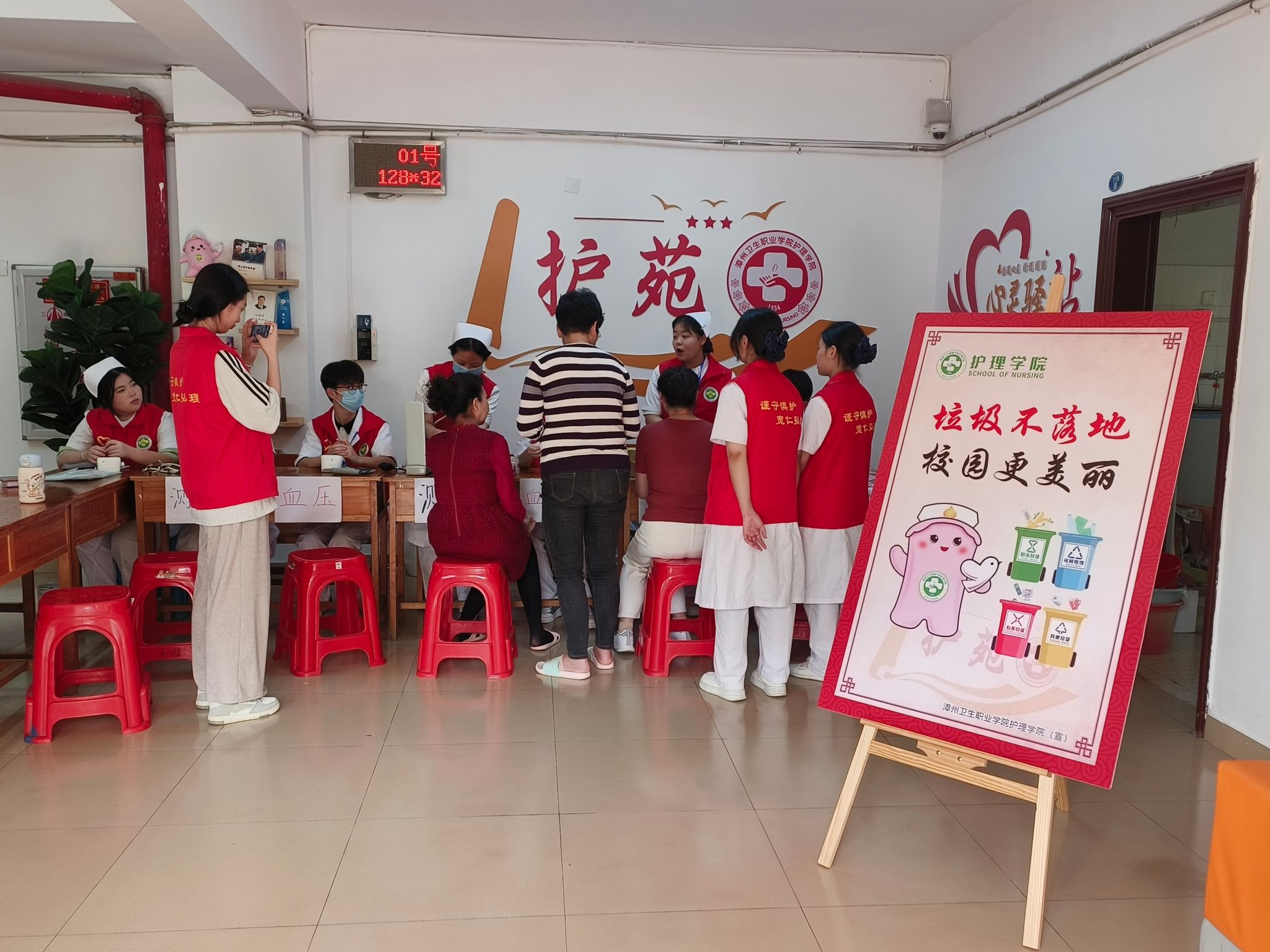 高位推动,强化组织引领。由党总支牵头,组织党支部成员成立垃圾分类工作领导小组,发挥先锋模范作用,将生活垃圾分类纳入党建活动,以党建带团建,做好工作规划,责任分工,对照标准落实整改,全面推动生活垃圾分类工作。资源整合,实现多元宣传。辅导员以及带班班主任线上利用班群等资源发放垃圾分类电子读本,线下开展主题班会加强宣传并普及垃圾分类知识,并以学生“一站式”社区为根据地,结合各项活动开展垃圾分类宣传教育工作,进一步强化我院师生垃圾分类意识和能力。