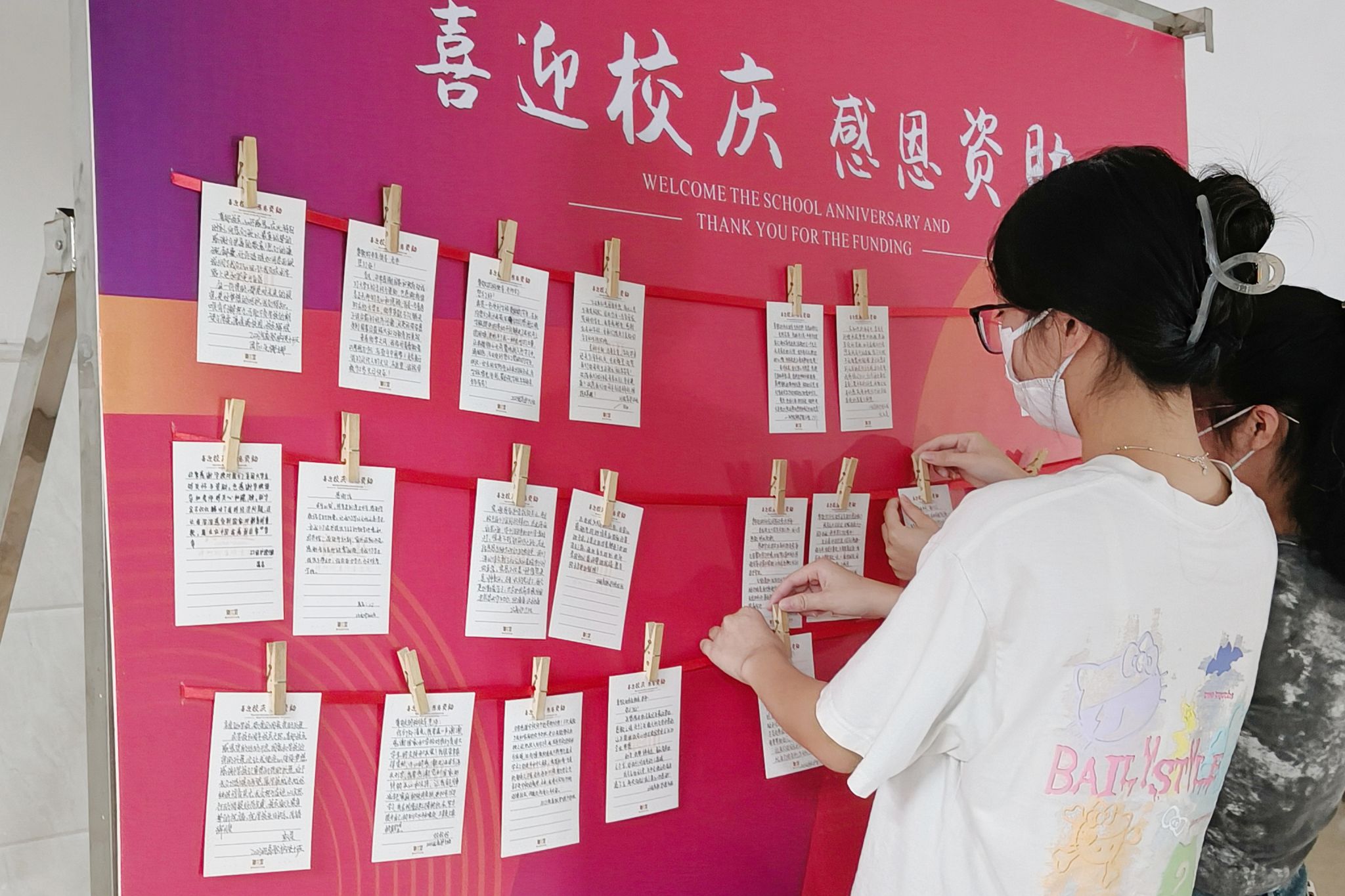 活动现场,主持人介绍了国家和学校的各项资助政策,并向受过资助的同学们发放了精美的明信片。同学们纷纷提笔写上寄语,将明信片夹在活动墙上,打卡拍照,留下纪念,表达了自己对国家及学校资助政策的感恩,并为学校90周年校庆送上了最真挚的祝福。来自2023级高职助产四班的一位受助学生在现场分享了她在资助政策下刻苦努力的学习历程,表示一定会珍惜现在、把握机会,用扎实的知识、善良的品德、过硬的本领报效国家、感恩社会、服务人民。