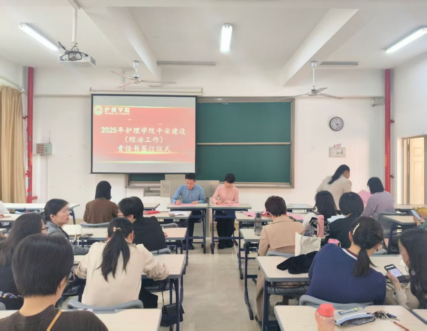 4 月 8 日,学院在励志楼 203 召开 2025 年平安建设(综治工作)会议、全体教职工参加了签订仪式,会议由学院党总支书记主持。