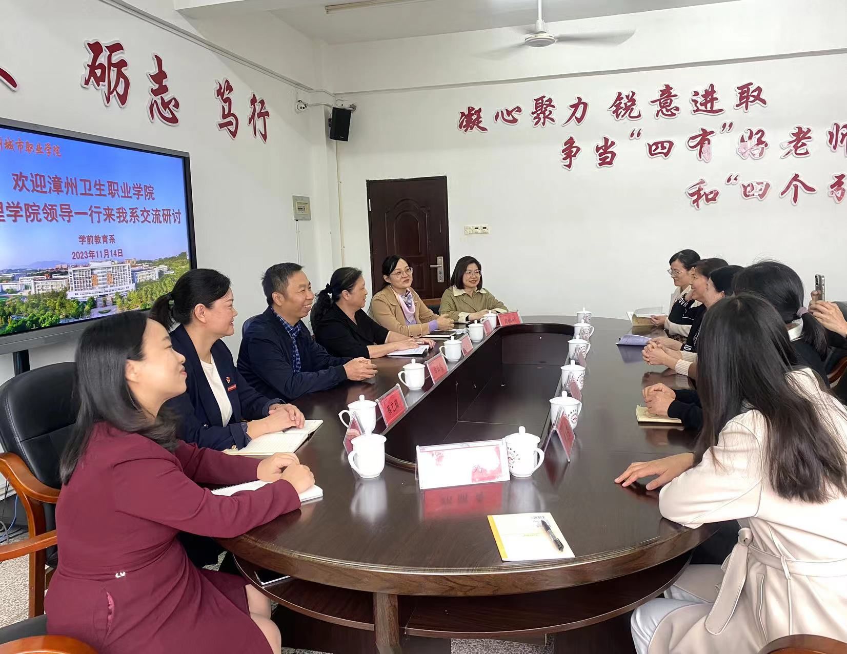 11月14日下午,护理学院院长白正勇、副院长洪梅带领教学科研办、儿科护理教研室一行7人到漳州城市职业学院学前教育系考察调研,漳州城市职业学院学前教育系党总支书记、主任陈慕贞、副书记蔡艺娟、副主任黄瑾和婴幼儿托育服务与管理专业带头人陪同调研。