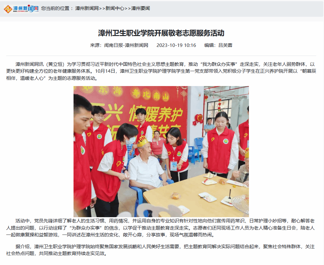 漳州新闻网:漳州卫生职业学院开展敬老志愿服务活动