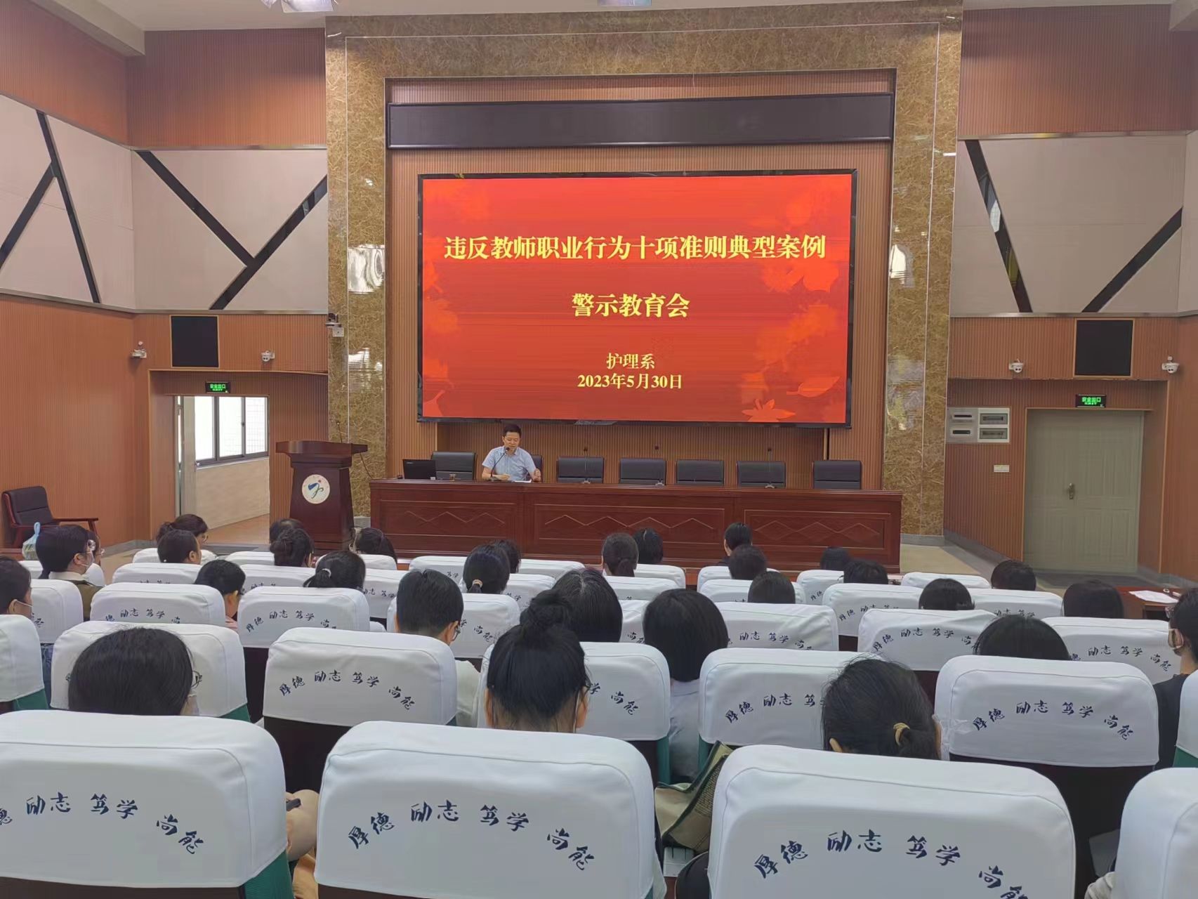 教师队伍是教育强国的第一资源,教师承担着为党育人、为国育才的光荣使命,师德师风建设更是重中之重,本次警示教育会以案为鉴,起到良好的警示教育作用,护理系将继续贯彻落实教师职业行为十项准则要求,重视加强教师思想政治和师德师风建设工作。