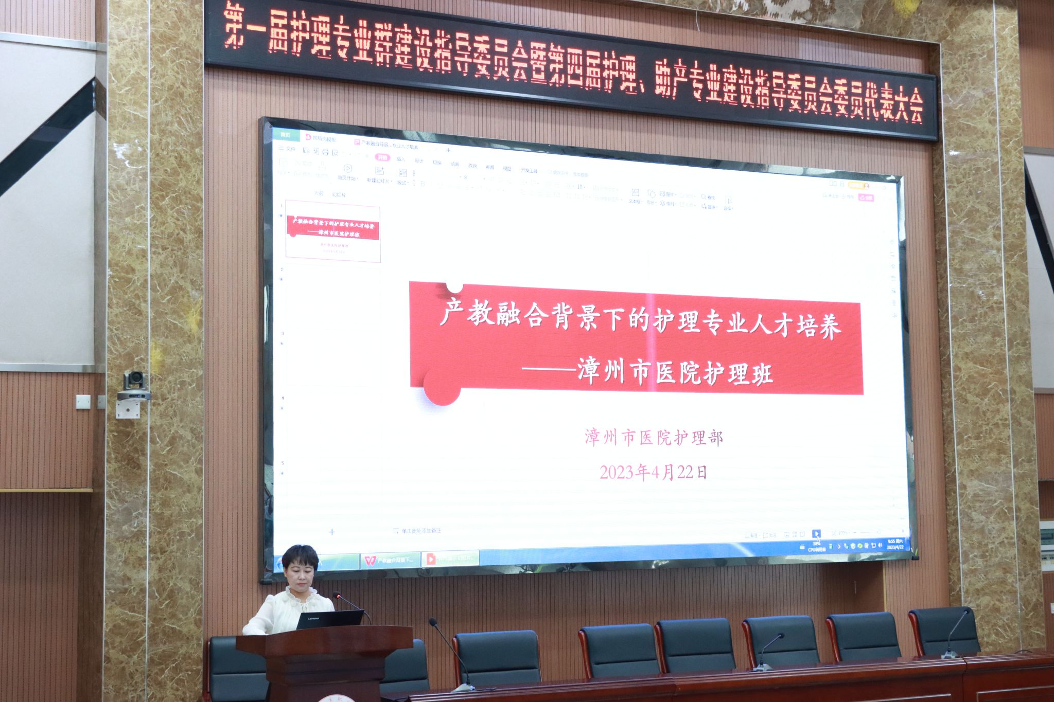 会上,沈小美副院长代表学院致辞欢迎各行业专家的到来,并指出本次会议的召开是深化产教融合、校企合作,加快现代职业教育体系建设的迫切要求,也是深化学院教学改革,进一步提高人才培养质量,适应新形势下高职医学教育的发展需求,是学院在“院校联合、校企合作、产教融合”方面探索和实践的具体举措;随后护理系主任、副主任宣读了成立护理专业群建设指导委员会的通知、聘任课程负责人的通知和关于推进产教融合共建专业、课程项目的通知;与会领导为护理专业群、护理、助产专业建设指导委员会成员、受聘行业课程负责人及项目合作建设专家颁发了聘书;护理系主任白正勇作近三年护理高水平专业群建设工作报告,漳州市医院作合作办学典型案例交流。