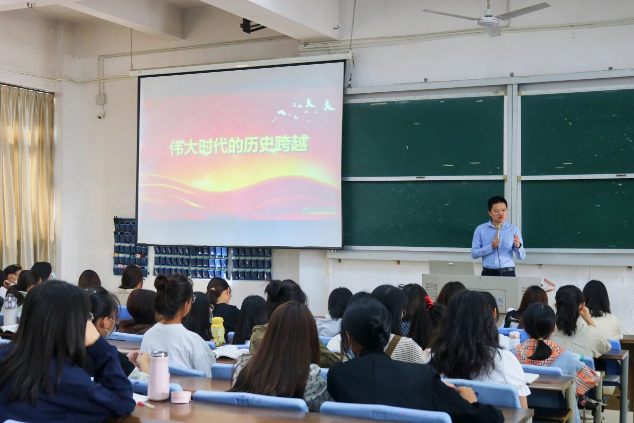 10月26日上午,护理系书记练建斌走进课堂与2021级高职助产1-2班同学们进行亲切的深入交流,并开展“伟大时代的历史跨越”主题思政课。