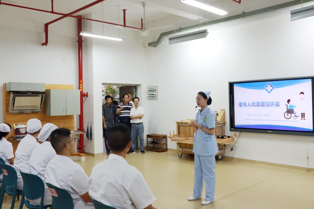民政局一行参观了学院实训中心,特别来到福建省养老服务人才实训基地、基础护理实训基地,深入了解了学院护理、养老护理员、医疗护理员、健康照护等人才培养和社会培训情况。林忠书记向民政局一行人简要介绍了学院基本办学情况、近年来取得的成绩及未来发展规划,重点介绍了学院在医养、康养人才培养和社会服务方面具有的优势。曾建新充分肯定了学院办学成效,希望学院依托省养老服务人才实训基地,为漳州养老、助老事业发挥积极作用。
