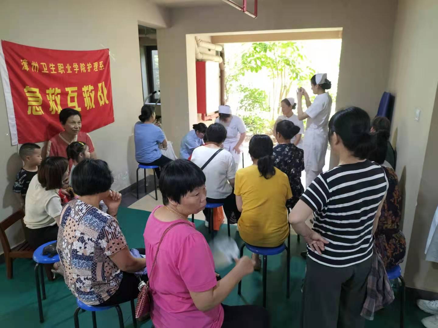 为提倡全民终身教育,推动老年人健康促进工作的开展,增强老年人关爱健康的意识,提升老年人的急救互救能力,5月16日,护理系老年人急救互救培训课题组携手上墩卫生院暨金峰社区服务中心在万科璟园开展老年人急救互救能力培训和便民义诊。