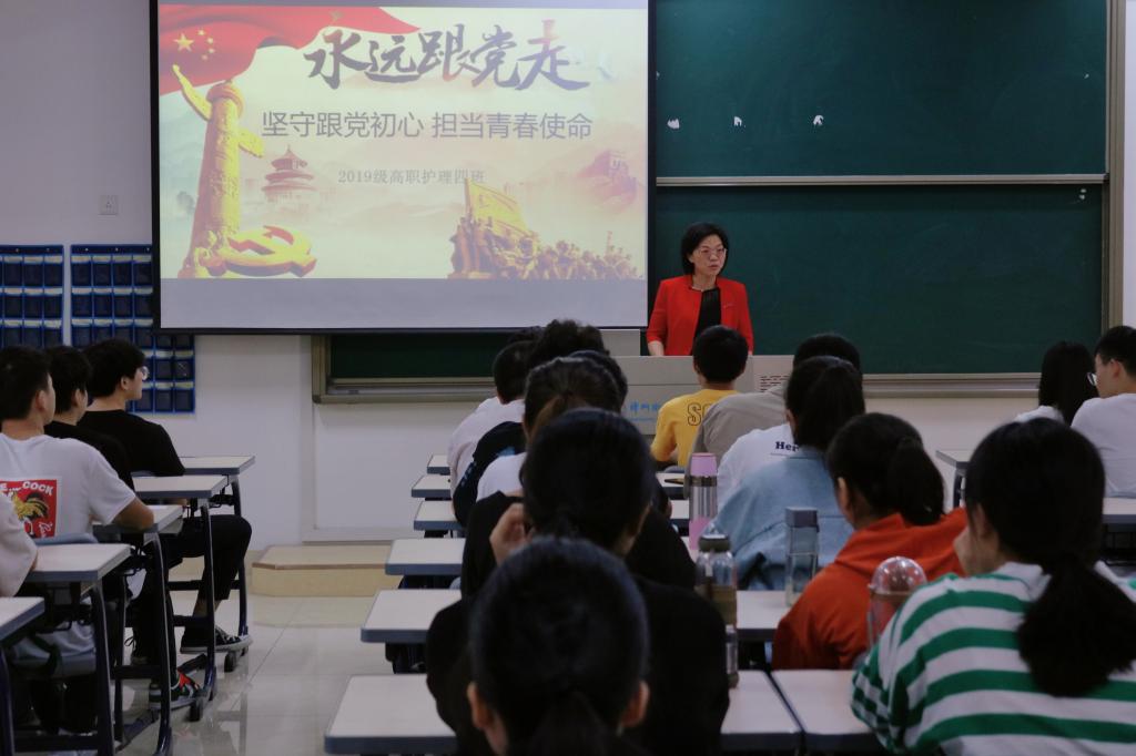 11月16日下午,学院副院长沈小美深入挂钩班级2019级高职护理4班,在励志楼205召开以“坚守跟党初心 担当青春使命”为主题班会,全体同学积极参与踊跃发言。