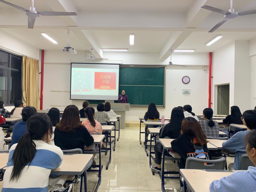 课堂一开始,张副主任就强调:“爱国,是人世间最深层、最持久的情感。作为一名中国人,什么心都可以缺,但不能缺爱国之心;什么情都可以少,但不能少爱国之情。”紧接着,课堂展开了“什么是爱国?”“为什么要爱国?”“作为一名当代大学生,如何做新时代爱国者?”等问题的探讨,同学争先发言从不同角度表达了对爱国的理解、感悟。张副主任对同学们的发言给予了肯定与鼓励,并结合当前香港问题进一步指出新时代爱国者,当有民族自信,当有全球眼光,当不断砥砺奋斗,当认真办好自己的事情。最后她对同学们寄予希望:愿每一位同学都能够厚植爱国精神,用奋斗书写青春,用青春向祖国告白,争做新时代爱国者。