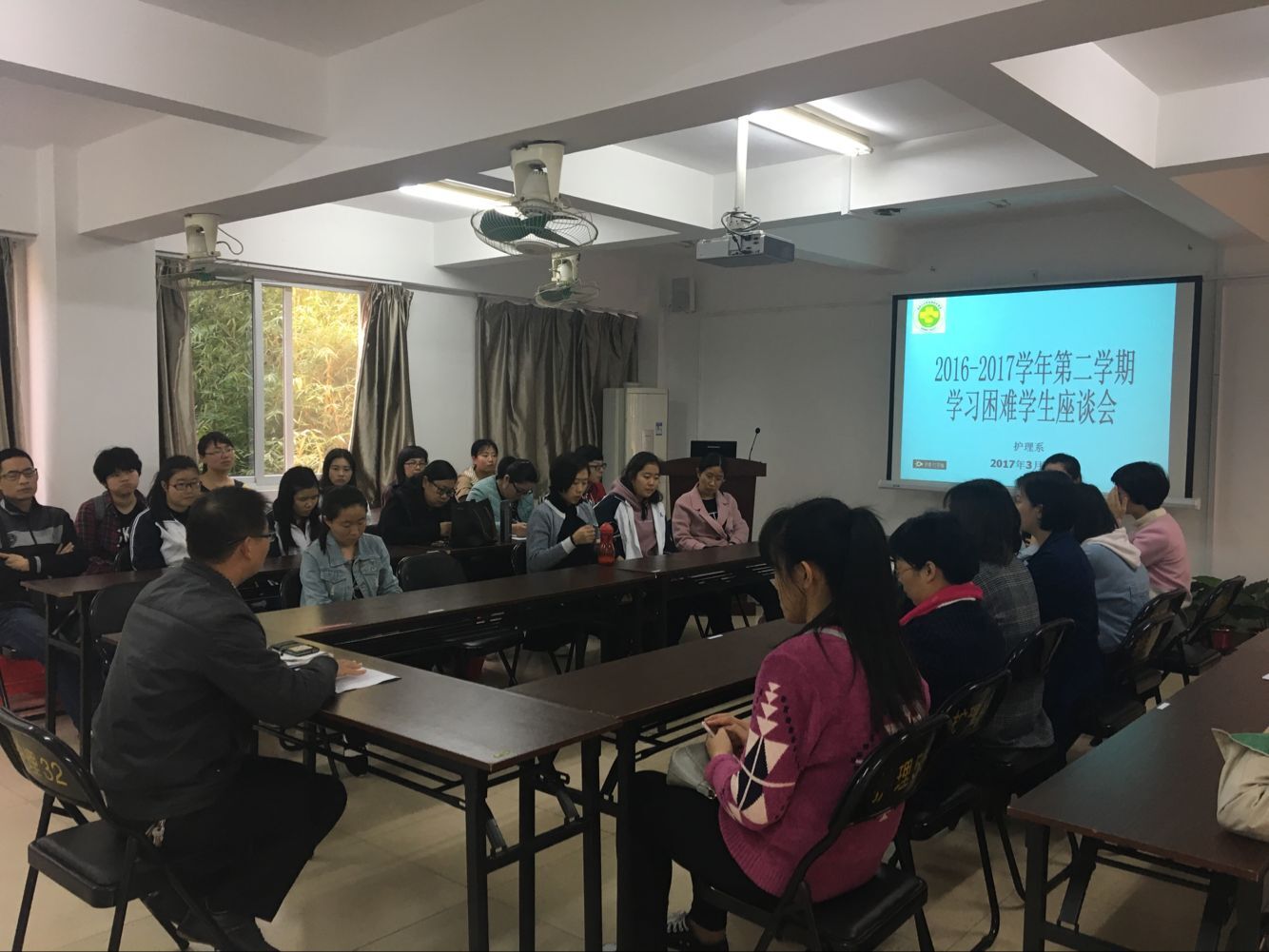 3月21日下午,护理系召开2016~2017学年第二学期学习困难学生座谈会,参加座谈会的人员有护理系党总支副书记、帮扶教师、教学秘书以及16名学习困难学生,会议由副书记主持。