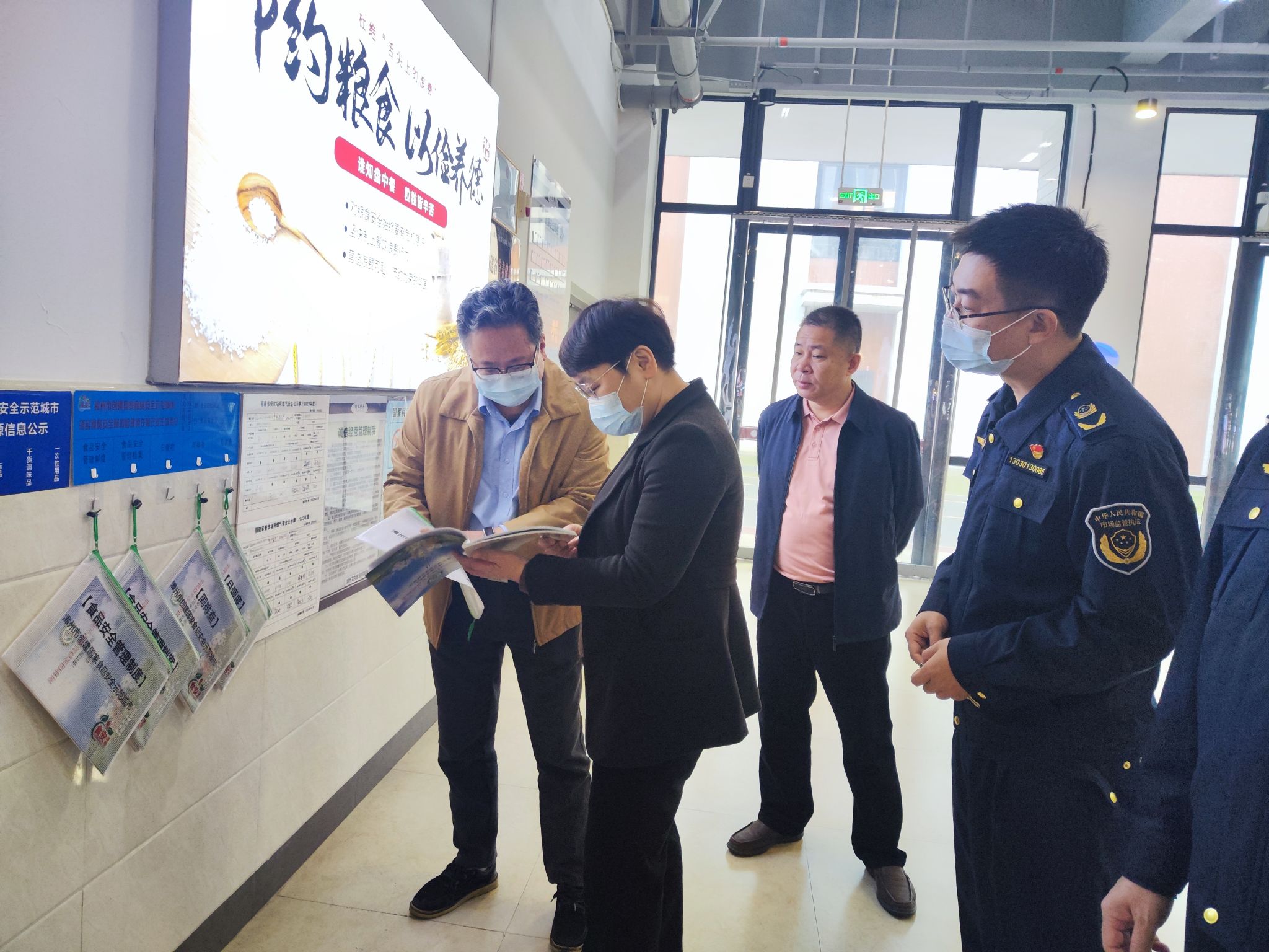 检查组一行深入我校食堂实地查看食品安全信息公示栏、食堂操作间、售卖区、仓库等场地,详细查阅了食堂从业人员健康证、索证索票、营养健康食谱。检查组充分肯定了我校的食品安全管理工作,并就一些细节问题提出了指导意见。叶俊霞强调,食品安全至关重要,筑牢食品安全关,构建食品安全体系,压紧压实学校食品安全主体责任,加强从业人员安全培训,建立健全“日管控、周排查、月调度”,强化食品安全防范措施,筑牢校园食品安全防线。