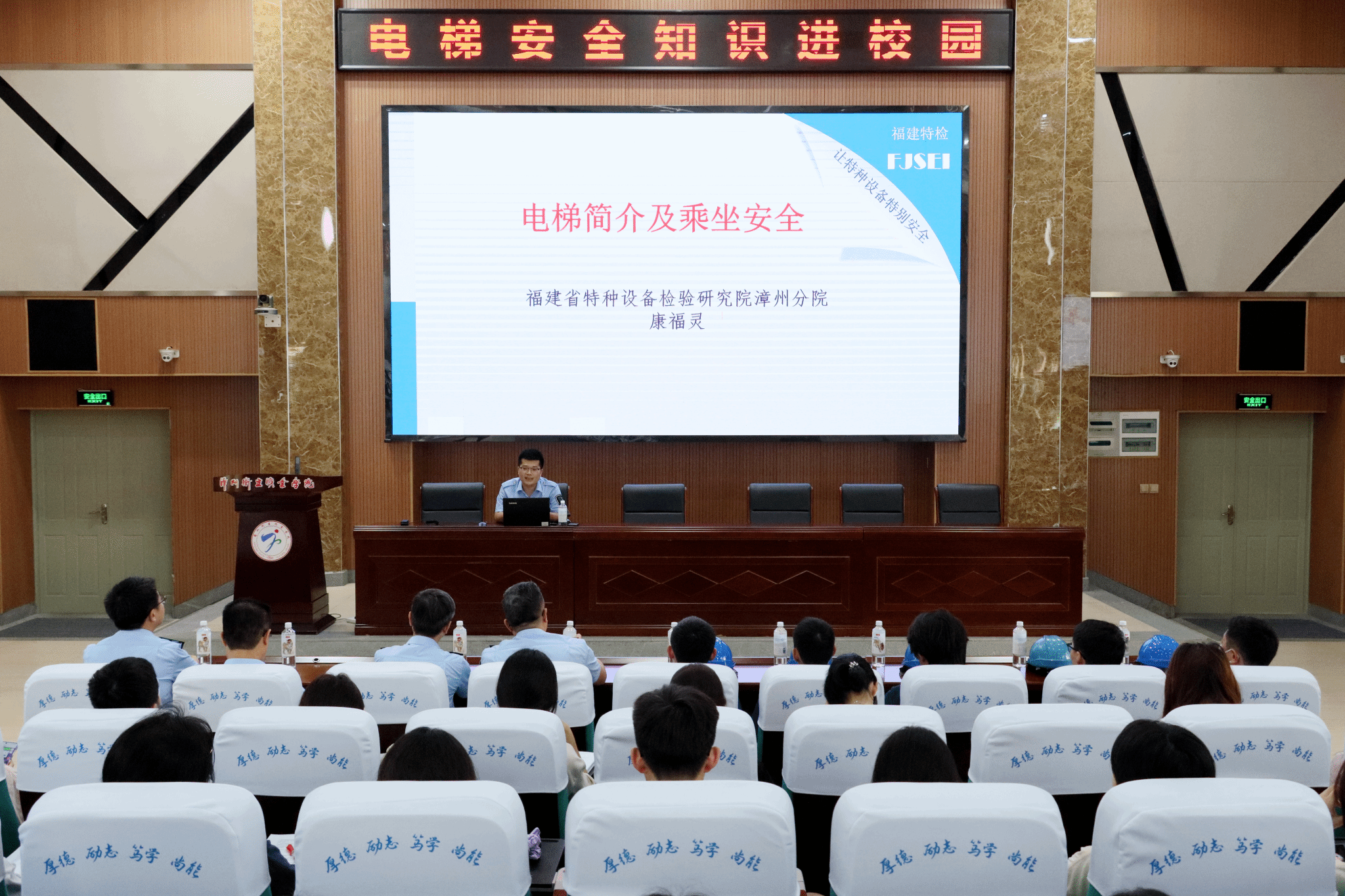 为进一步宣传普及电梯安全知识,提高师生正确乘梯意识和自我保护能力,6月21日下午,我校与芗城区市场监督管理局、福建省特种设备检验研究院漳州分院联合组织开展电梯安全知识进校园活动。