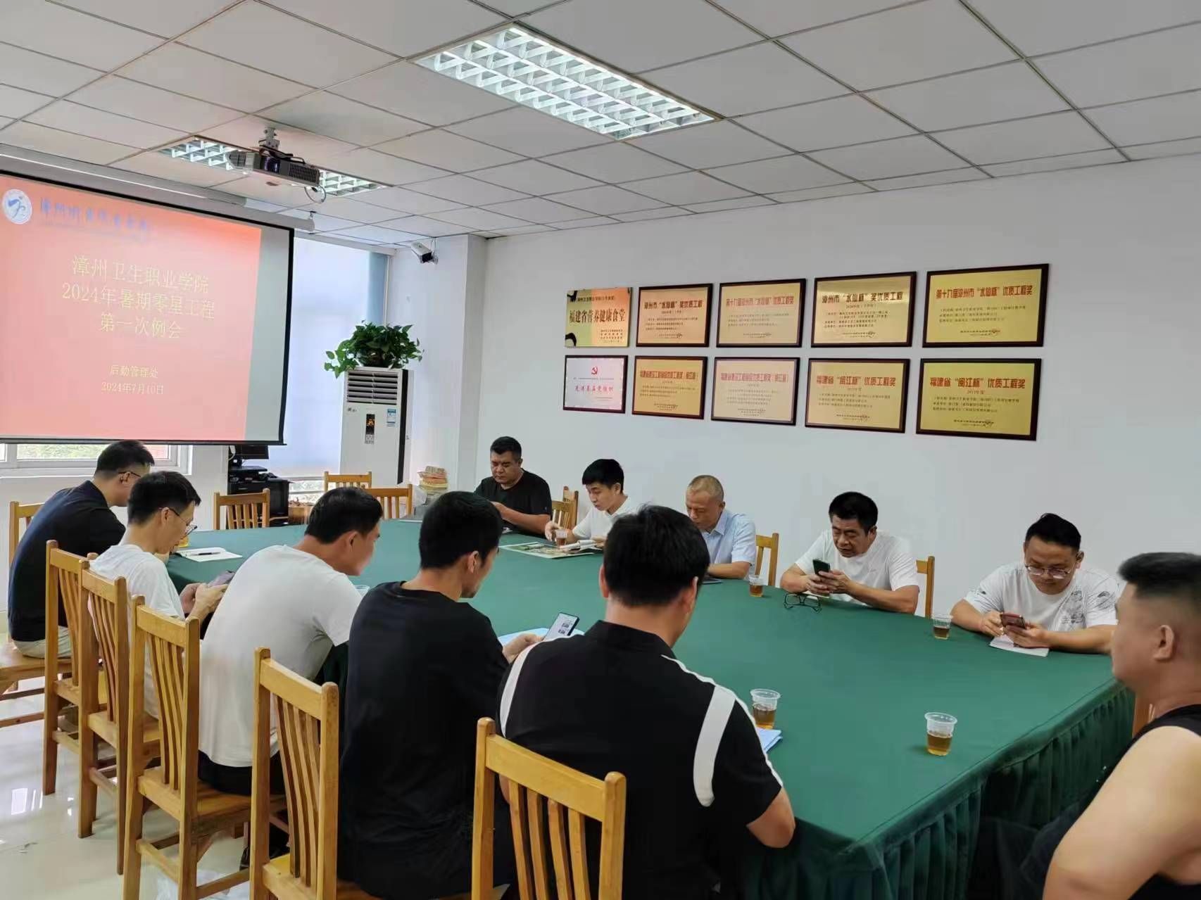 7月10日上午,我校在行政楼203会议室召开2024年暑假零星工程第一次例会。会议由后勤管理处负责人主持,各施工单位代表参加会议。