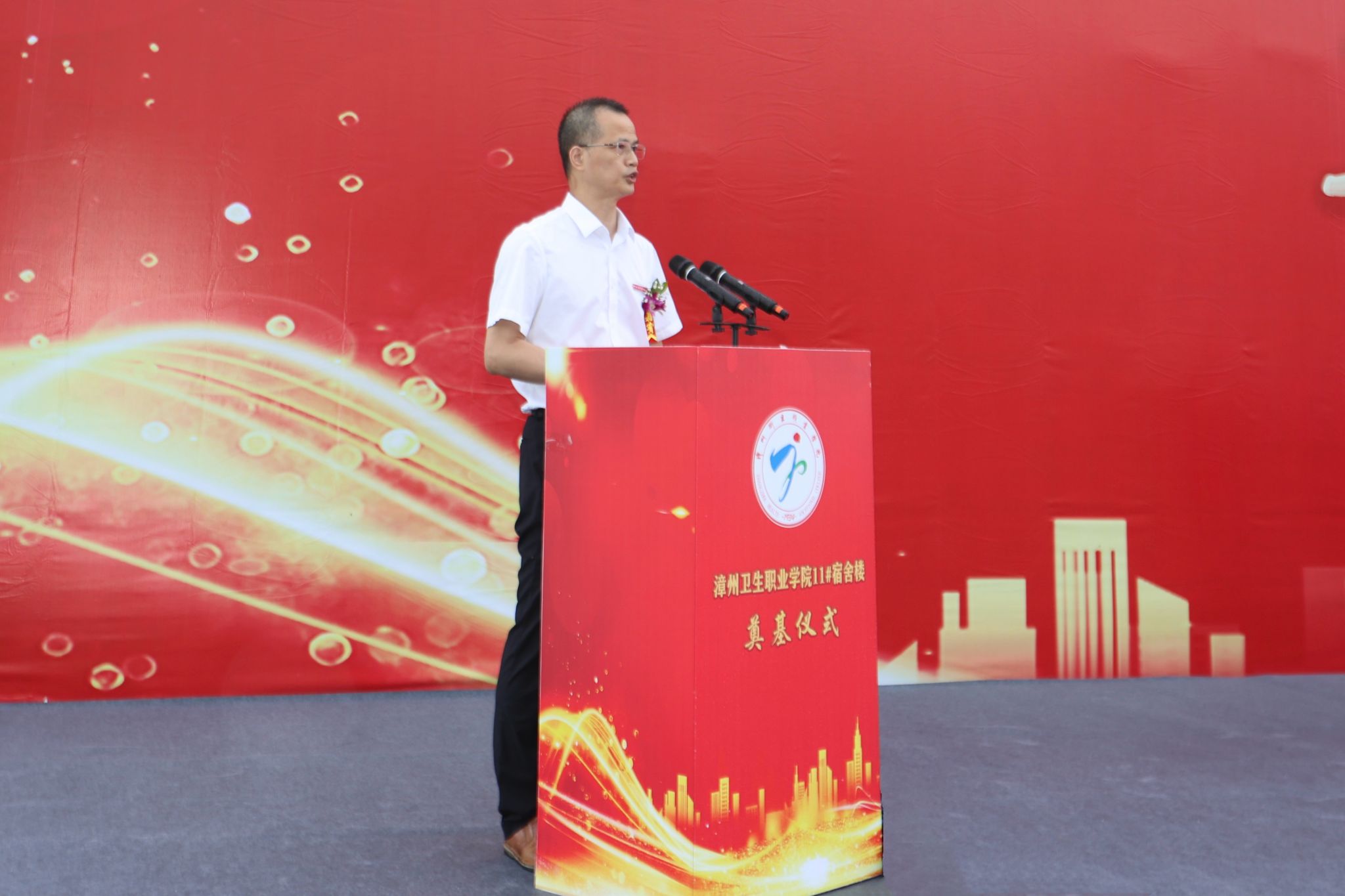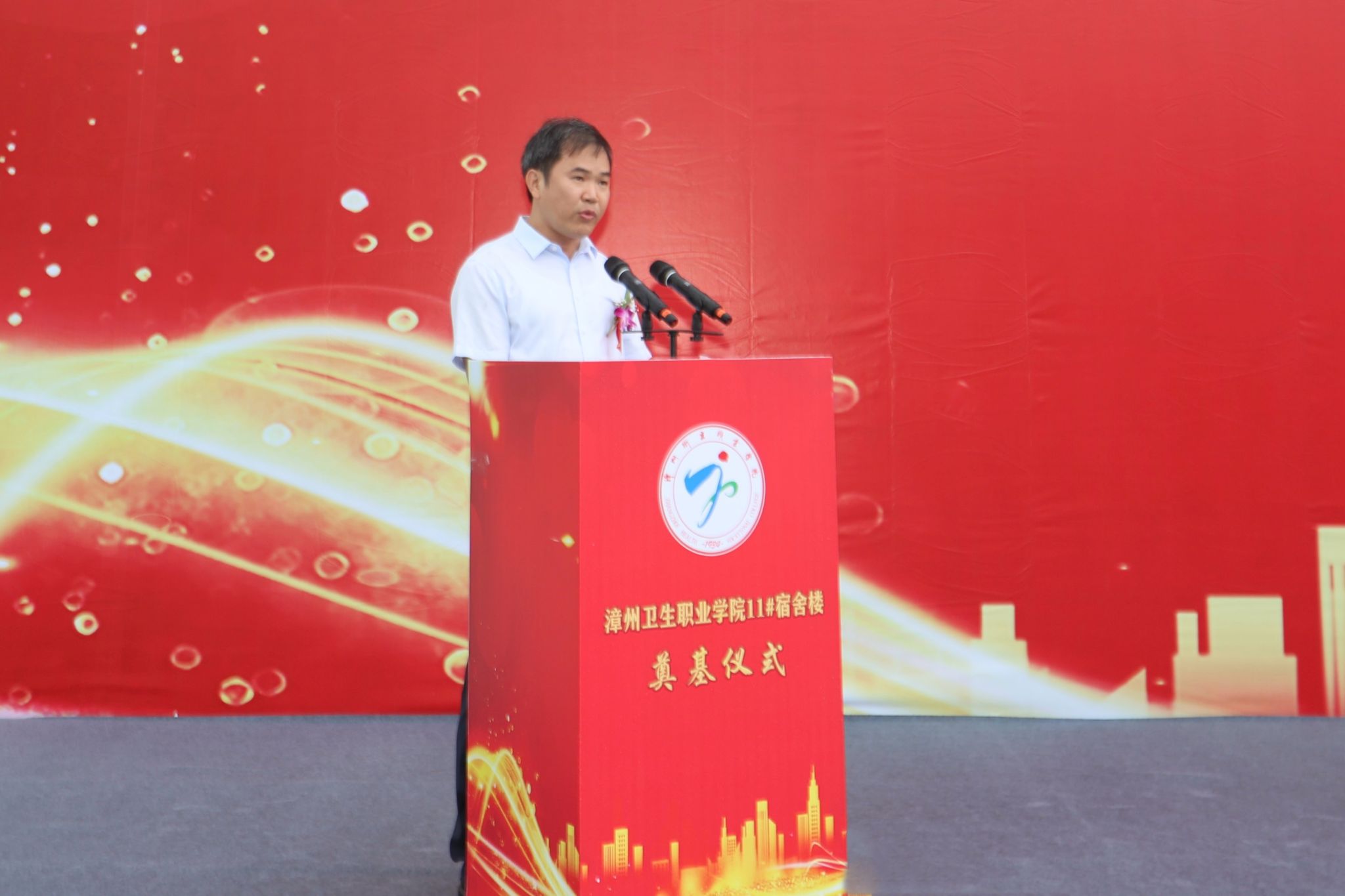 卢炳全代表市委教育工委、市教育局致辞,对学校11号宿舍楼奠基表示热烈祝贺,对长期关心支持漳州教育发展的社会各界表示衷心的感谢。他充分肯定了学校建校90年来的办学成就,希望学校加强统筹保进度,希望各参建单位严抓质量保安全,希望学校和各参建单位通力协作保交付。他强调,市委、市政府高度重视职业教育改革发展,希望学校以11号宿舍楼建设为契机,加强“一站式”学生社区建设,持续优化办学条件,为全体师生的学习、生活、工作创造更加优越的环境,为全面提升人才培养质量提供更加坚实的保障,为推动漳州职业教育高质量发展作出新的更大贡献。