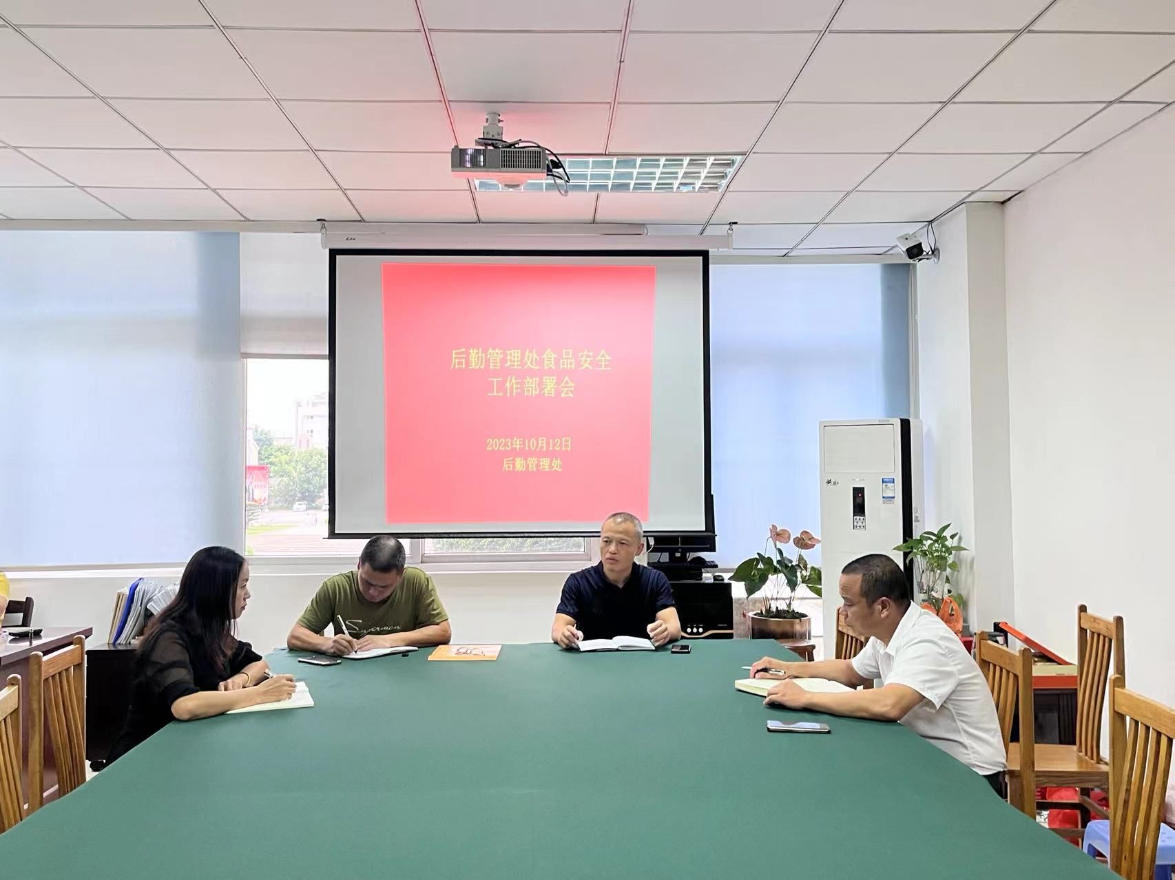 10月12日下午,后勤管理处组织开展食品安全工作部署会,会议由后勤管理处负责人主持,食堂相关负责人及两食堂现场经理参加会议。