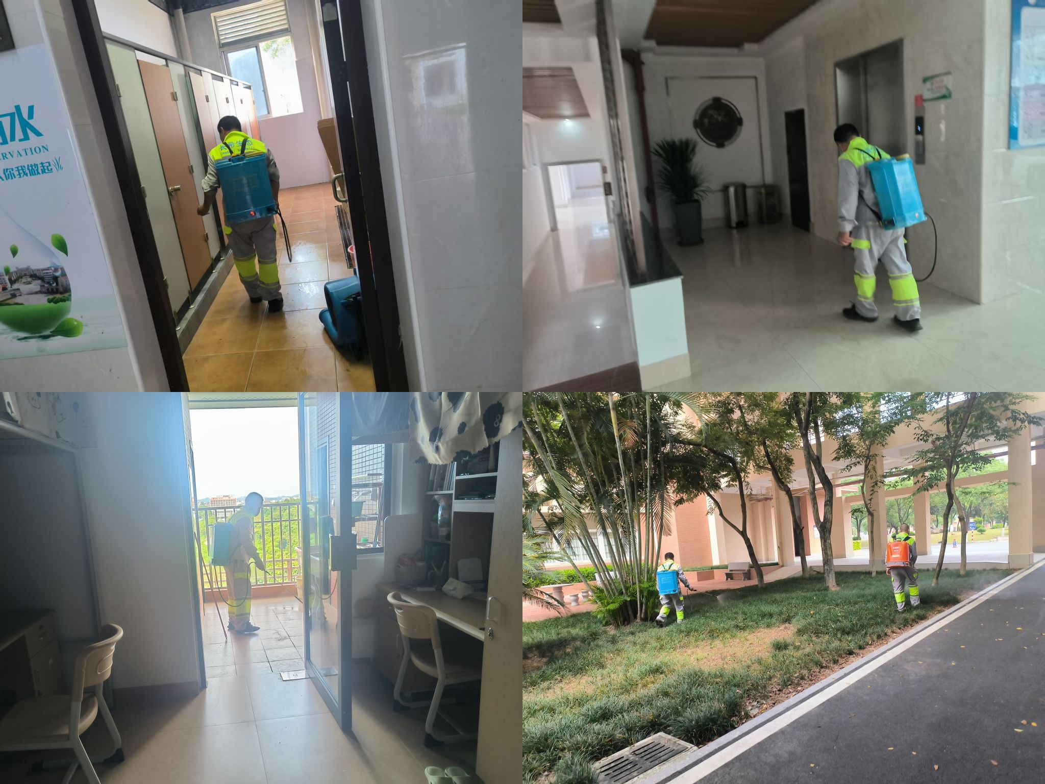 行动期间,后勤管理处组织物业人员对校园进行了“地毯式”排查与清理。重点对绿化带、下水道、排水沟、天台积水、闲置容器等蚊虫易孳生场所进行了彻底清理,清除了各类积水和卫生死角,从源头上杜绝了蚊卵的孵化与幼虫的生长,切实做到了“翻盆倒罐,清除积水”。此次消杀选用高效低毒的环保药剂,严格遵循操作规范,力求在最大限度降低对师生影响的前提下,高效杀灭成蚊,显著降低校园内的蚊虫密度。