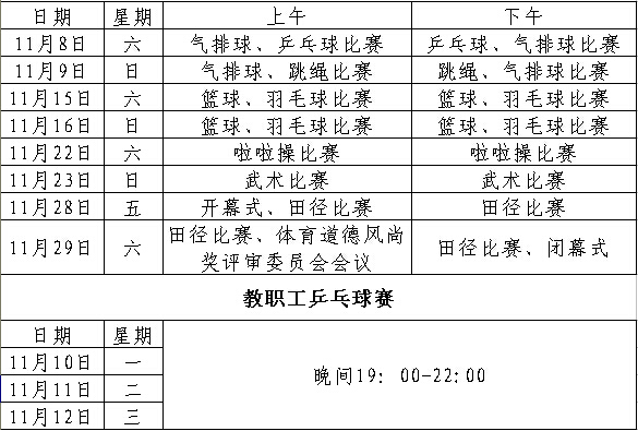 第四届阳光体育节暨第八届田径运动会大会活动日程
