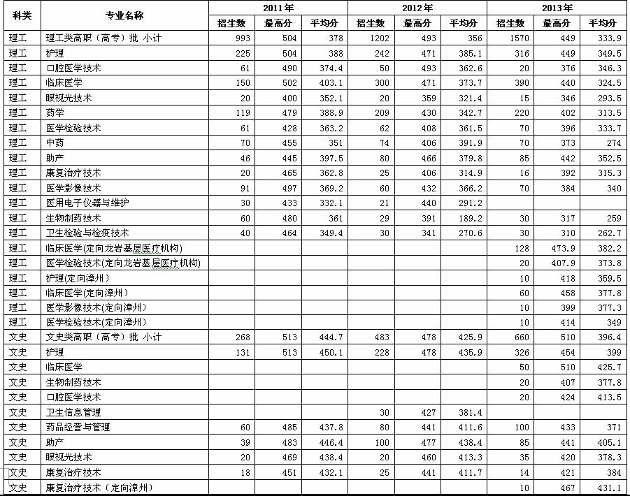 学院2011—2013年各专业录取分数线
