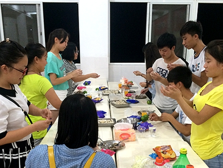 会上,系领导首先给同学们送上中秋祝福,表达学校对外省籍同学的关爱,希望同学们在大学里相互交流,增进友谊,敢于拼搏,努力求学。同学们也纷纷进行自我介绍,与大家分享家乡的风土人情,畅谈入学以来的一些感想和今后的理想抱负,并以各自的家乡话祝愿中秋节快乐。随后,系部领导与同学们一起进行包饺子、中秋博饼活动,切实让外省学生感受漳州传统过中秋风俗。