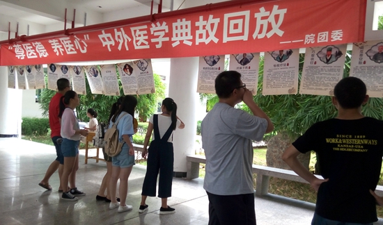 5月17日,由院团委会主办的“尊医德,养医心”中外医学典故展于明德楼大厅拉开序幕。