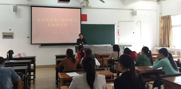 3月30日,厦门眼科中心医院在明智楼305教举行专场宣讲会。本次宣讲会面向我院2013级中、高职眼视光专业学生。