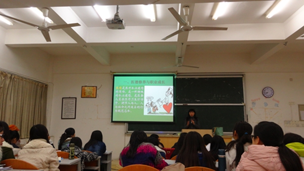 12月17日晚,院青年马克思主义学社于明德楼20教开展践行社会主义核心价值观与提升医德修养主题讲座,讲座由思政部刘凌霜老师主讲,青马学社全体成员及指导老师参加此次讲座。