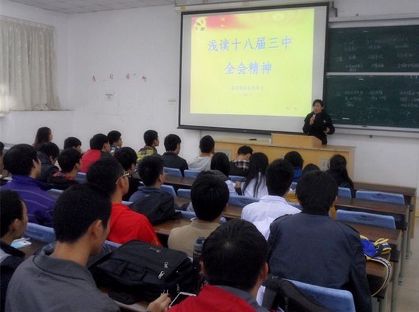 课上,系党总支书记紧紧抓住当前中共十八届三中全会召开这一时政热点,组织党员教师与学生学习了十八届三中全会公报全文,他还围绕“三中全会主要干什么”、“改革主要涉及哪些领域”等方面进行解读。授课紧扣形势,深入浅出,并穿插了提问互动环节,为师生答疑释惑,帮助大家进一步了解和把握当前发展格局,开阔视野,准确把握会议精神实质,不断增强贯彻落实全会精神的自觉性和坚定性。