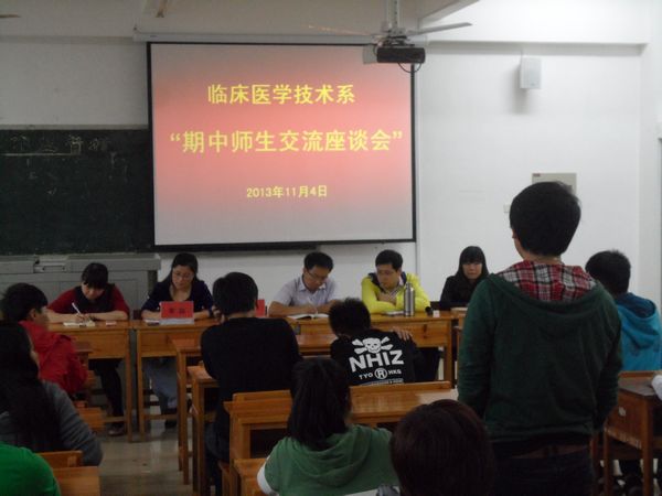 11月4日下午,临床医学技术系在学院5号楼309召开期中师生座谈会。系党总支副书记、辅导员、教研室主任以及各班级学生代表参加了此次座谈会。会议由临床医学技术系副主任主持。