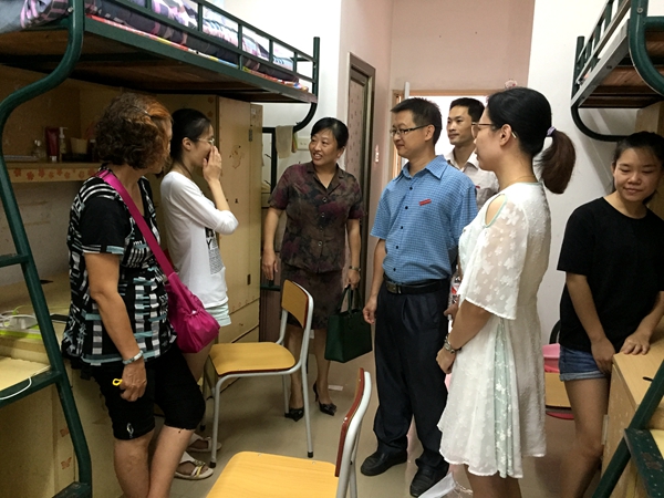 当天下午,系部领导还来到每一间宿舍,了解新生入住情况,跟学生及家长进行交流,对他们表示了关心。