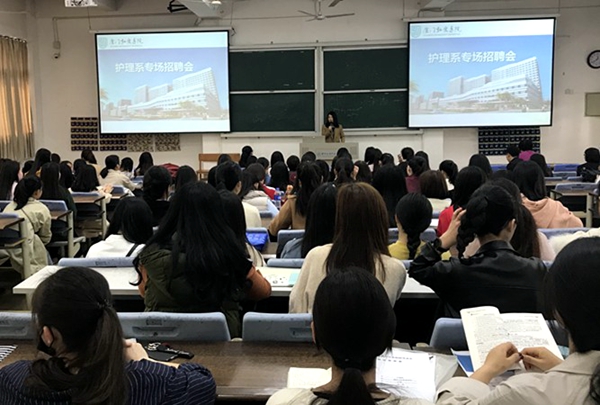 厦门市弘爱医院人力资源部张业烨经理从企业文化、企业背景、企业风采等三方面对医院作了详细介绍,希望有更多优秀毕业生能够加入到弘爱医院。宣讲会后,弘爱医院对报考的同学进行了笔试和面试,一批优秀学子通过考试赢得了弘爱医院招聘方的青睐,本次招聘会取得圆满成功。