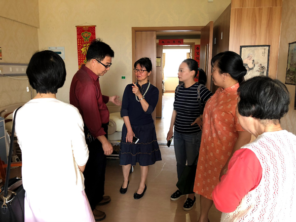 养护院院长陈臻、正兴医院护理部主任朱小燕及相关工作、医护人员陪同我系养老项目团队参观养护院的普通病房、VIP病房、康复功能区、食堂以及生活娱乐区,全面介绍养护院设施设备及入住老人的基本情况。参观结束后,我系团队就养老护理人员的培养就业、养老社会服务影响等问题与陈院长等人进行深入探讨。陈臻院长在交流会上强调养老产业是我国的朝阳产业,“医养结合”甚至是“医养融合”将是我国养老体系发展的必然趋势。我系主任提出是否可探索建立校企合作的养老类服务相关项目,共同扩大双方单位在漳州地区养老服务的社会影响力。会上双方还就护工培养模式、养老护理实训情景再现等内容深入交流。
