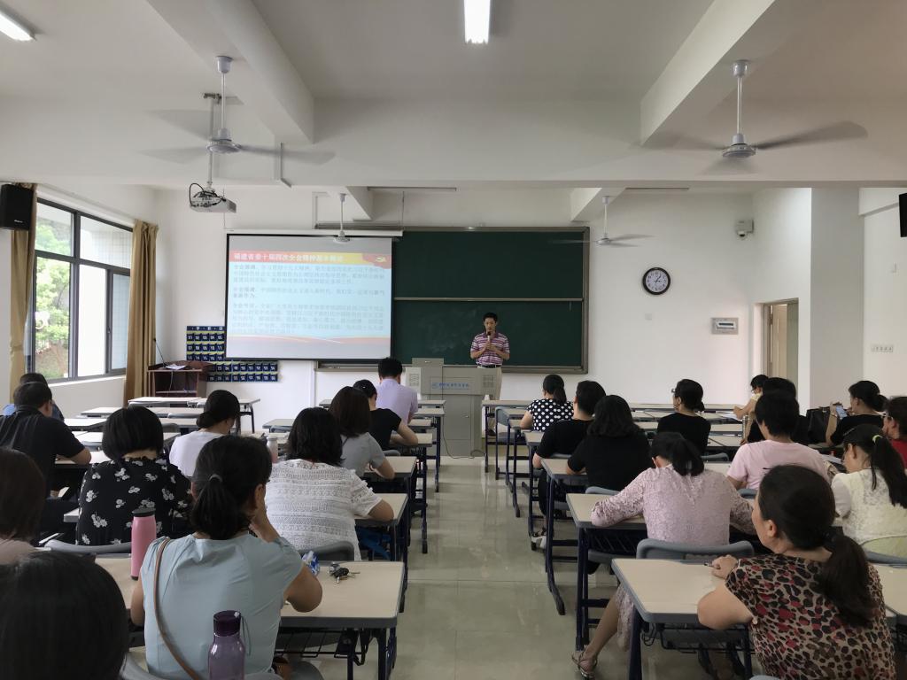 首先,学工办主任、学生第二党支部书记传达了省委十届四次、五次全会和省纪委十届三次会议精神,他指出,全体老师要深入学习会议精神,承担起决胜全面建成小康社会、开启新时代福建省现代化建设新征程的光荣使命,为“再上新台阶、建设新福建”贡献力量。