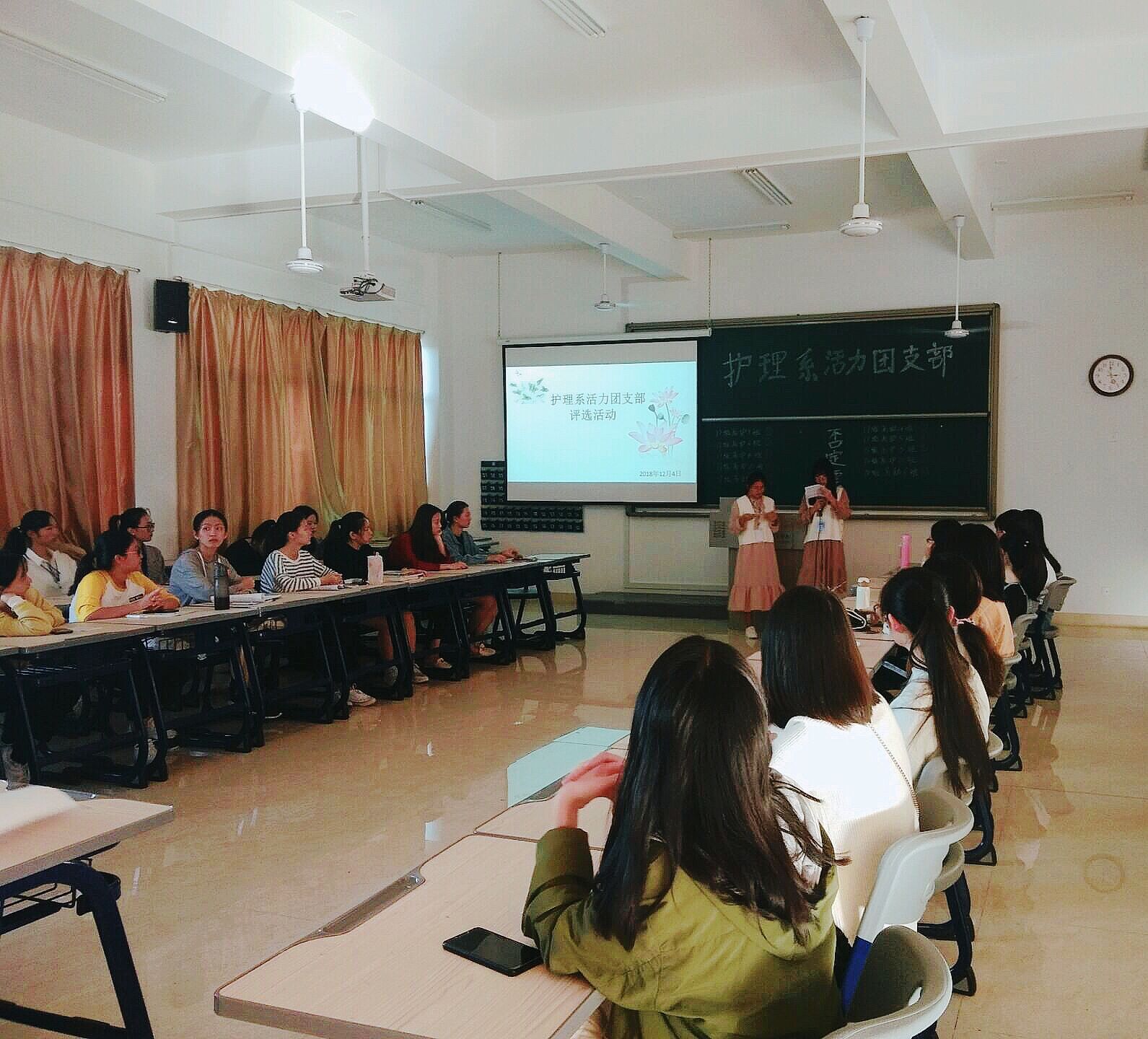 12月4日,护理系在笃学楼102教室举办“活力团支部”评比大赛。2017级、2018级团支书及系部团员代表参加了活动。