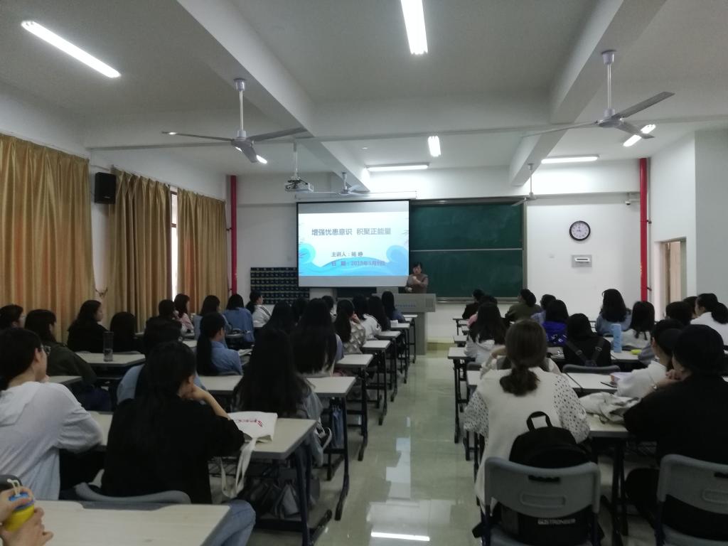 5月9日,护理系杨峥主任走上讲台,向2018级护理专业的同学上了一堂题为“增强忧患意识积聚正能量”的很“燃”很有味的思政课。