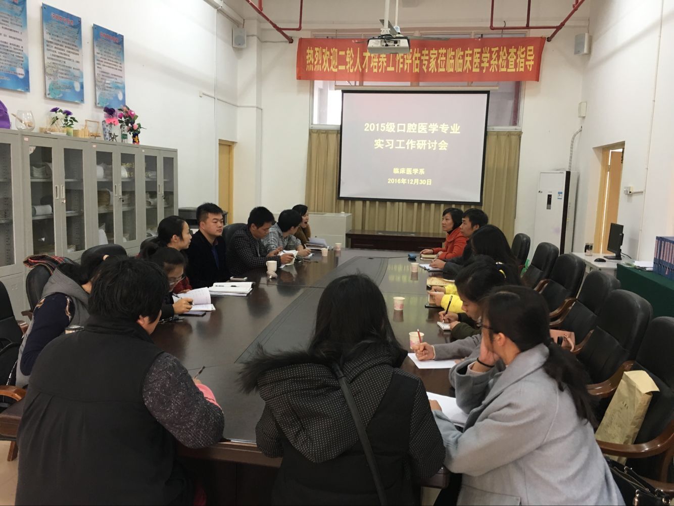 12月30日上午,临床医学系在图书馆五楼会议室召开2015级口腔医学专业实习工作研讨会。系领导、院实习科科长、口腔教研室教师、口腔医学专业辅导员及系办行政人员参加会议。