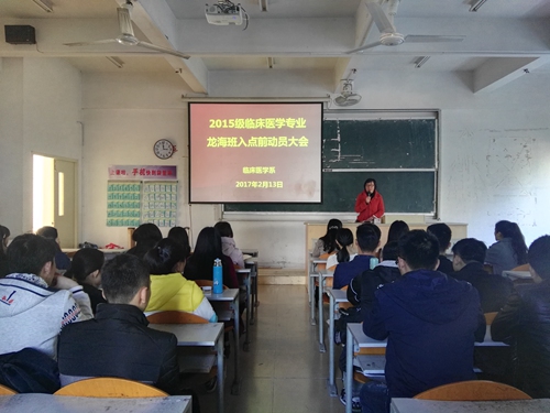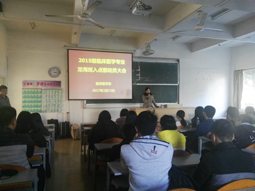 2月13日下午,2015级临床教学班赴附属龙海市第一医院学习入点前动员大会在明德楼14教举行。系领导、学生辅导员及2015级临床医学专业龙海班30名学生参加会议。