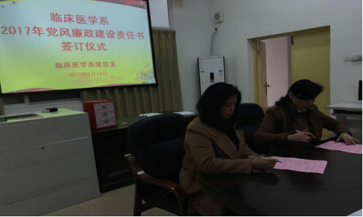 为深入贯彻落实中共中央关于落实党风廉政建设责任制及学院相关文件精神,切实抓好党风廉政建设。3月14日下午,临床医学系在系部会议室图书馆503举行党风廉政建设责任书签订仪式,系部领导班子成员及全体教职工参加仪式。