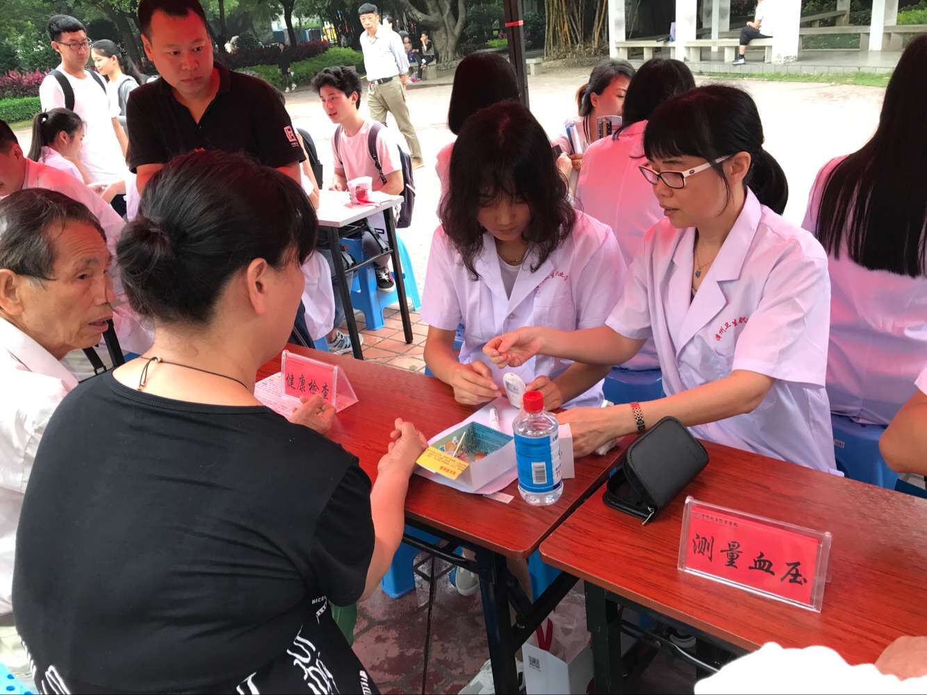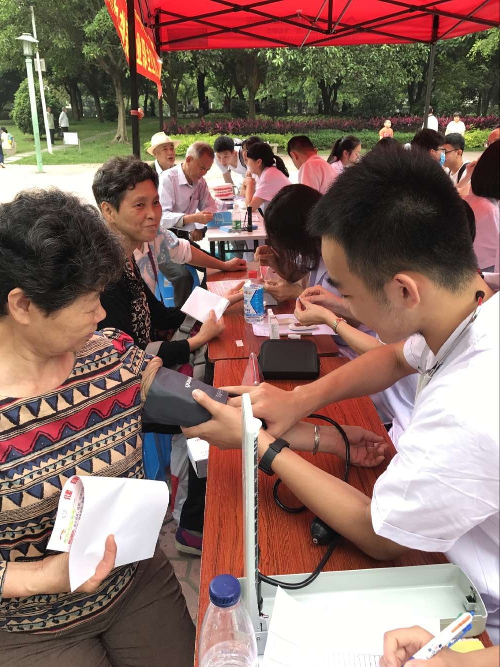 5月6日上午8:30我系联合附属口腔医院在漳州市胜利公园开展“爱翼漳州行”社会服务活动。“爱牙社”、“爱翼行”志愿服务队在我系黄跃芬副主任、王丽红老师、陈明媚老师的带领下开展本次活动,他们在实践过程中指导学生并充分发挥专业教师的社会服务功能。志愿服务项目有口腔检查、健康咨询、血糖测试和测量血压、体重和身高测量等。我们的老师耐心为居民讲解咨询的问题,学生也从活动中学到了在课堂中没有的知识点。这次社会服务我们为216人次进行血压测量,血糖测试30人次。
