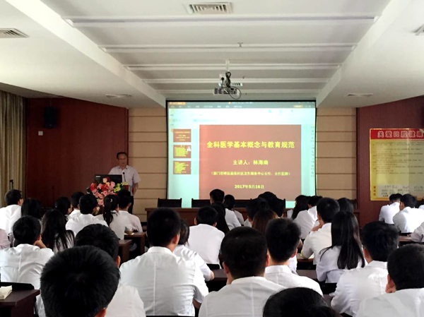 5月16日下午,临床医学系在学院附属口腔医院三楼会议室隆重举办专题讲座“全科医学基本概念与教育规范”,讲座由厦门嘉莲社区卫生服务中心林海南主任主讲,来自全院部分教师及15级临床医学专业学生共100多人参加,会议由内科教研室主任王丽红老师主持。
