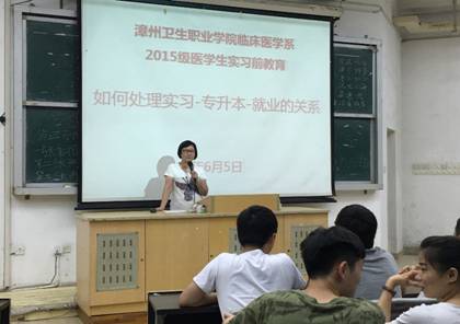6月5日,临床医学系面向2015级医学生632人,在明德楼9教举办实习前系列教育培训活动第一个专题——如何处理实习-专升本-就业关系。