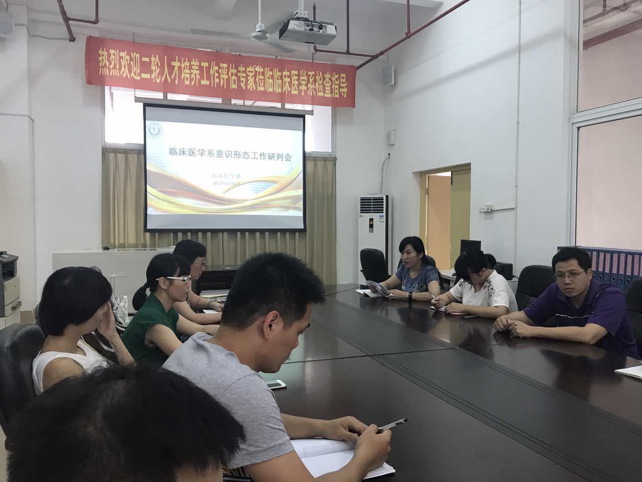 6月6日下午,临床医学系在系部会议室召开意识形态工作研判会,就如何进一步加强我系意识形态工作展开深入研判。会议由党总支书记颜晓萍主持,系部领导班子、总支委员、支部书记、各教研室主任参加会议。