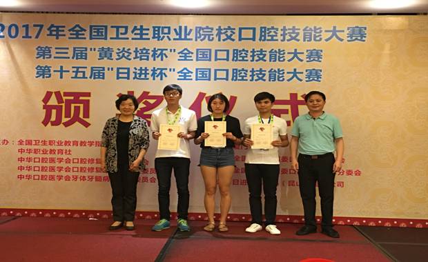 本次大赛共设雕牙和排牙、牙体制备和窝洞预备、CAD五个考核项目。赛场上,我院参赛选手经过顽强拼搏,取得可喜的成绩。荣获7个奖项,其中5项个人奖分别是:2015级口腔医学技术班许妙福同学荣获雕牙和排牙比赛二等奖及全口排牙组三等奖;2015级口腔医学技术班陈慧敏同学荣获雕牙和排牙比赛二等奖;2015级口腔医学1班林小芸同学荣获牙体制备和窝洞预备比赛三等奖;2015级口腔医学1班蔡小珍同学荣获牙体制备和窝洞预备比赛三等奖。另外还荣获2项集体奖分别为:“雕牙和排牙组”优胜团体奖和“牙体制备组”优胜团体奖。