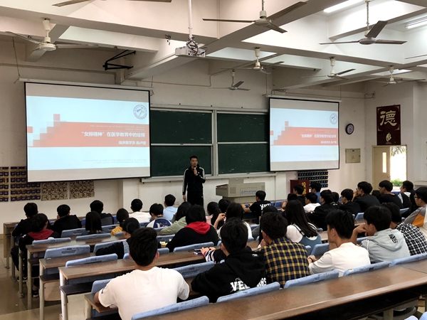 为进一步提升我系学生道德素养,构建崇德向善的道德风尚,3月27日下午,主题为“女排精神在医学教育中的诠释”的道德讲堂活动在明德楼104教室开讲。此次活动由临床医学系学生第一党支部宣传委员陈卢锴老师主讲,临床医学系师生参加。