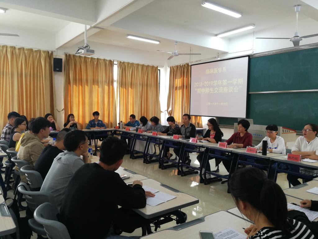 11月6日下午,临床医学系期中师生交流座谈会在厚德楼305教室召开,系书记、副主任、学工代表、各教研室、实训中心主任和系各专业班级学生代表参加座谈会,会议由系副主任主持。