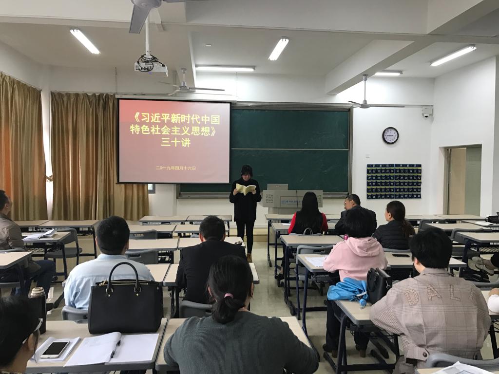 4月16日,临床医学系组织全体教职工开展《近平新时代中国特色社会主义思想三十讲》学习,由总支组织委员主讲。