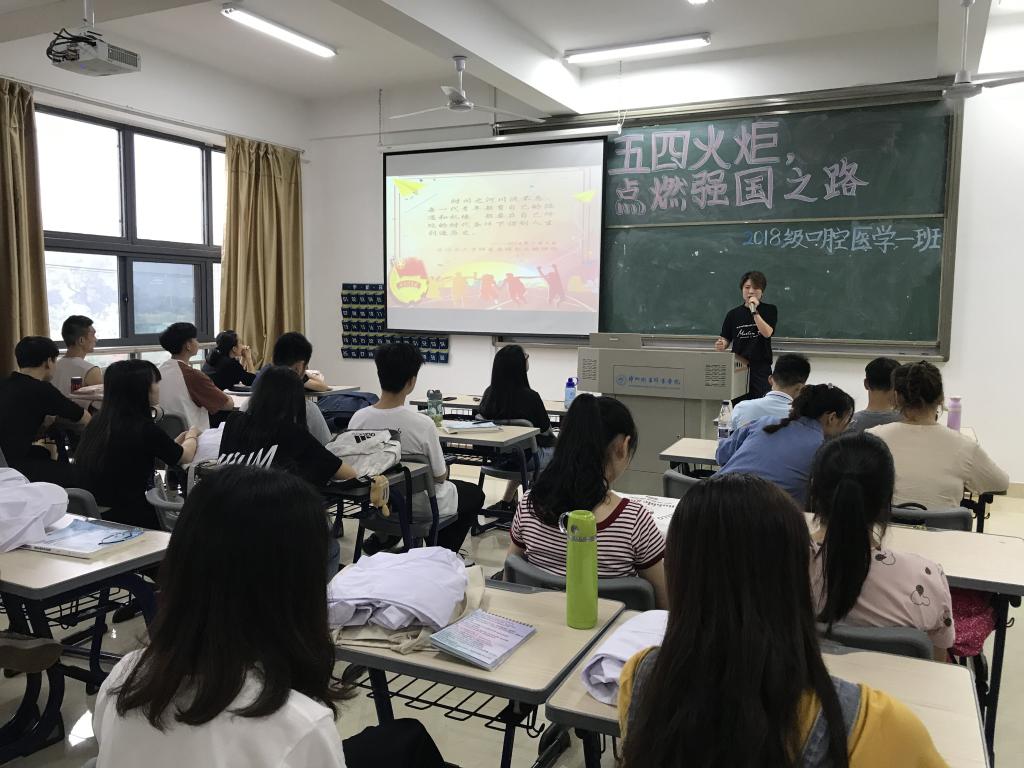 5月23日下午,我系团总支积极响应号召走进基层团支部,面向学生团员开展“五四火炬点燃强国征程”为主题的青马之光宣讲。本次活动由系团总支书记担任主讲,2018级口腔医学一班团支部团员聆听此次宣讲会。