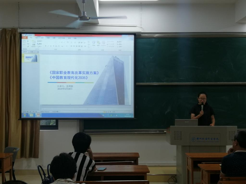 5月28日下午,我系全体教职工在厚德楼305学习《国家职业教育改革实施方案》和《中国教育现代化2035》。本次学习会由党总支书记主持,党总支纪检委员房老师主讲。